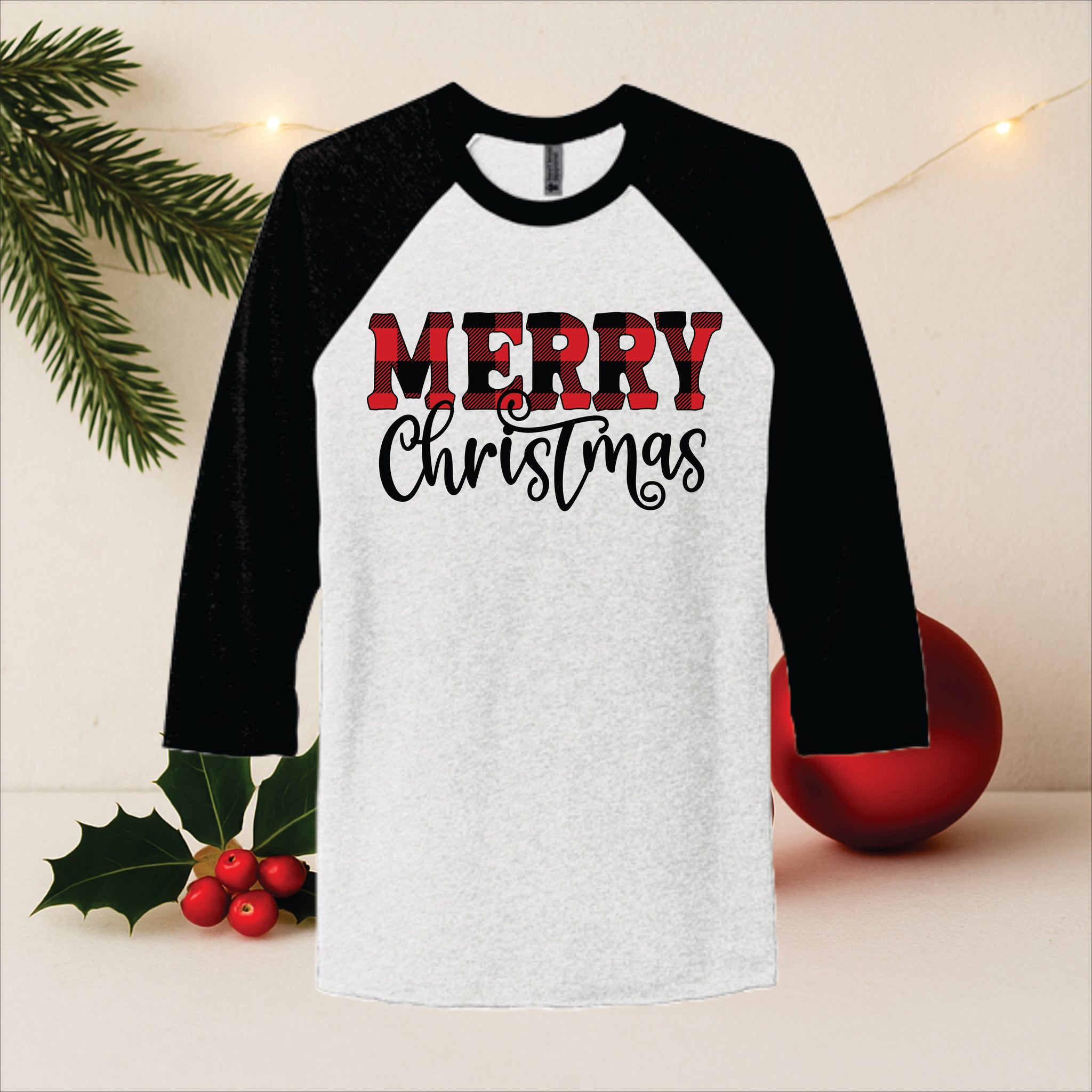 Merry Christmas Plaid Raglan Tee