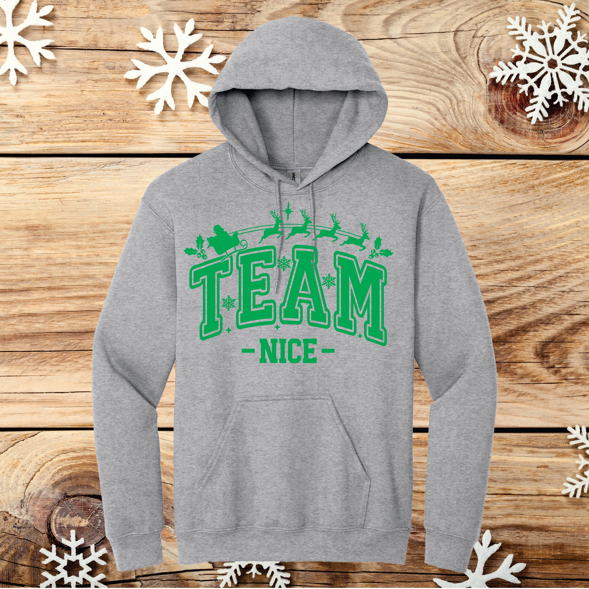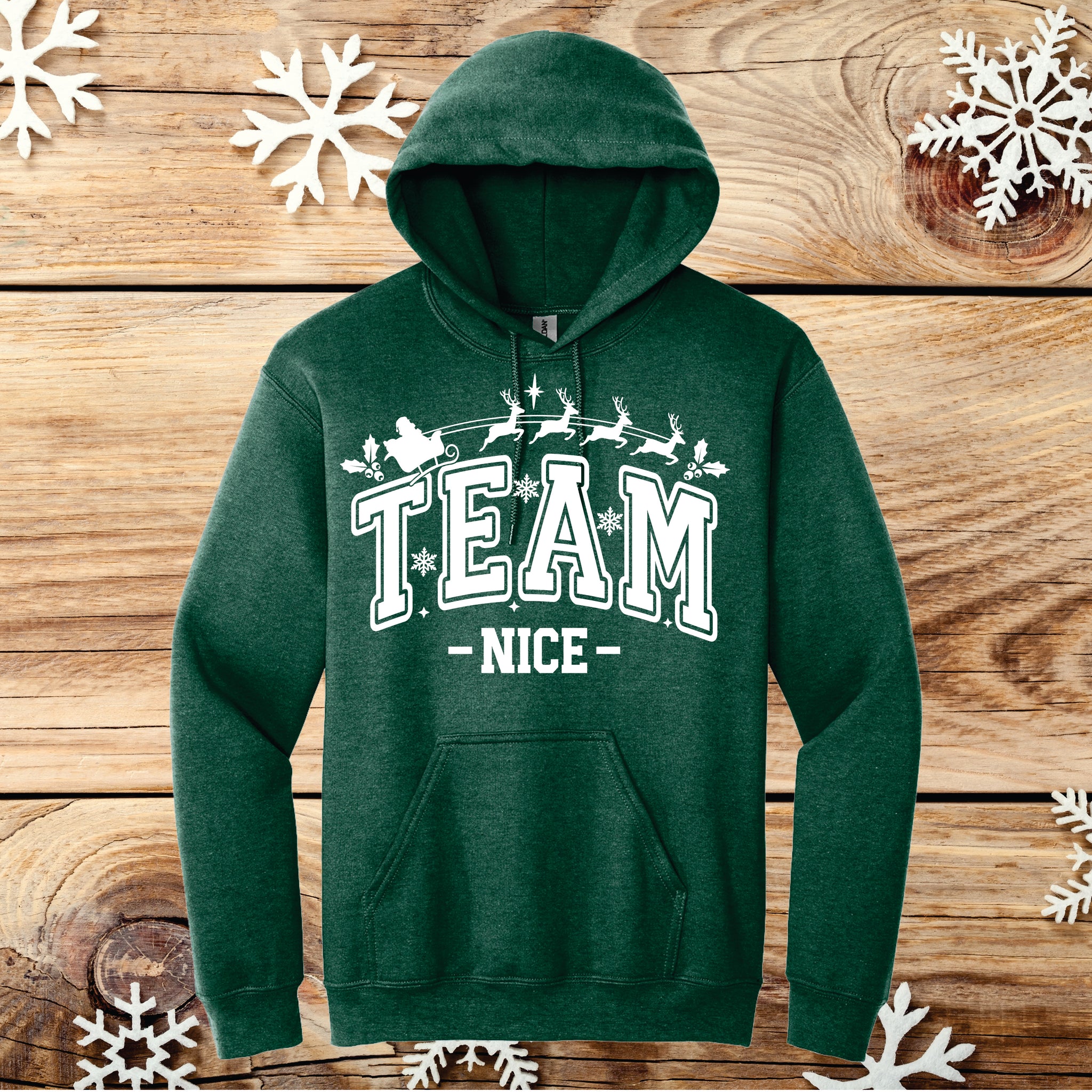 Make certain you're on the right list this year with the "Team Nice" hoodie.